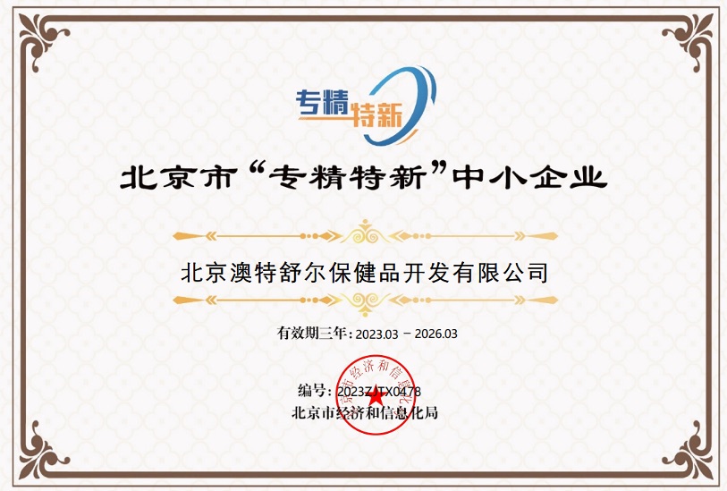 此次,北京澳特舒爾獲評(píng)“專(zhuān)精特新”中小企業(yè),是認(rèn)可、是激勵(lì),更是堅(jiān)持走專(zhuān)業(yè)化、精細(xì)化、特色化、新穎化發(fā)展的成果,它將勉勵(lì)著北京澳特舒爾堅(jiān)定走“專(zhuān)精特新”的發(fā)展道路,不斷激發(fā)自身活力和發(fā)展動(dòng)力,以專(zhuān)業(yè)化的服務(wù),精細(xì)化的產(chǎn)品,持續(xù)創(chuàng)新的心態(tài),助力大健康產(chǎn)業(yè)的落地,助推大健康產(chǎn)業(yè)經(jīng)濟(jì)的蓬勃發(fā)展。